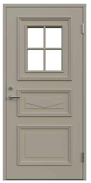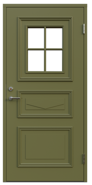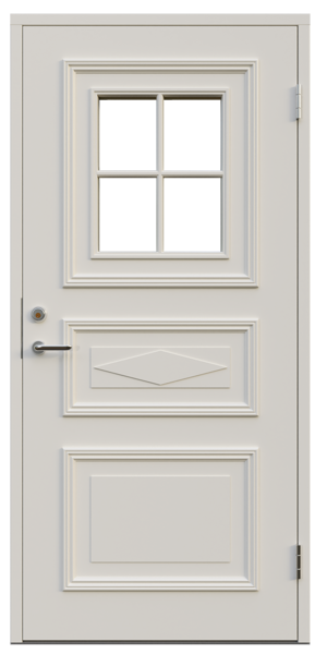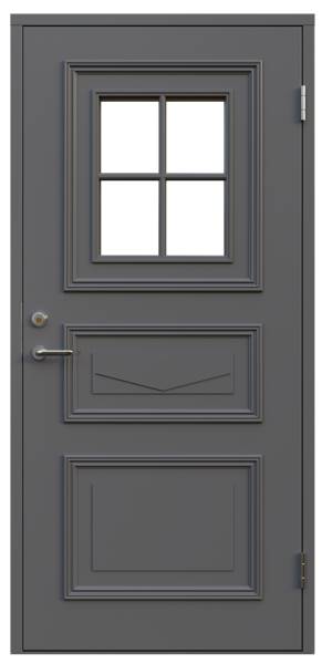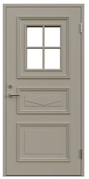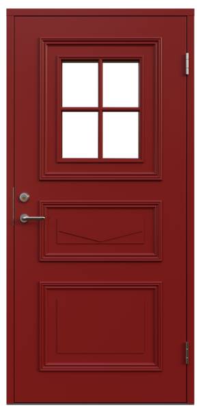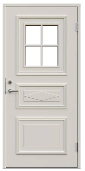 Glas: Klarglas 3-glas isolerruta T4-16 LE,argon,varmkantDekor: Dekorlistad utsida, slät insidaLåskista: Assa 2002 hakregellåsSlutbleck: Säkerhetsslutbleck med justerbart stängningstryckGångjärn: Justerbara säkerhetsgångjärn med bakkantssäkringDörrbladstjocklek: 74mmisolering: ecofiberYtskikt: Vattentålig hdfAluminiumplåt: 0,5 mm för extra styvhetKarm: 55x104 IngårKarmdjup: 104mmTröskel: 25mm tröskel Handtag: Ingår ej Kulör: Dörren är vit som standardLjudvärde: tät dörr rw30 glasad dörr rw29U-värde: tät dörr 0,86 glasad dörr 0,98Säkerhetsklassning: Tät dörr RC2 glasad dörr RC2NCE märkta: ja