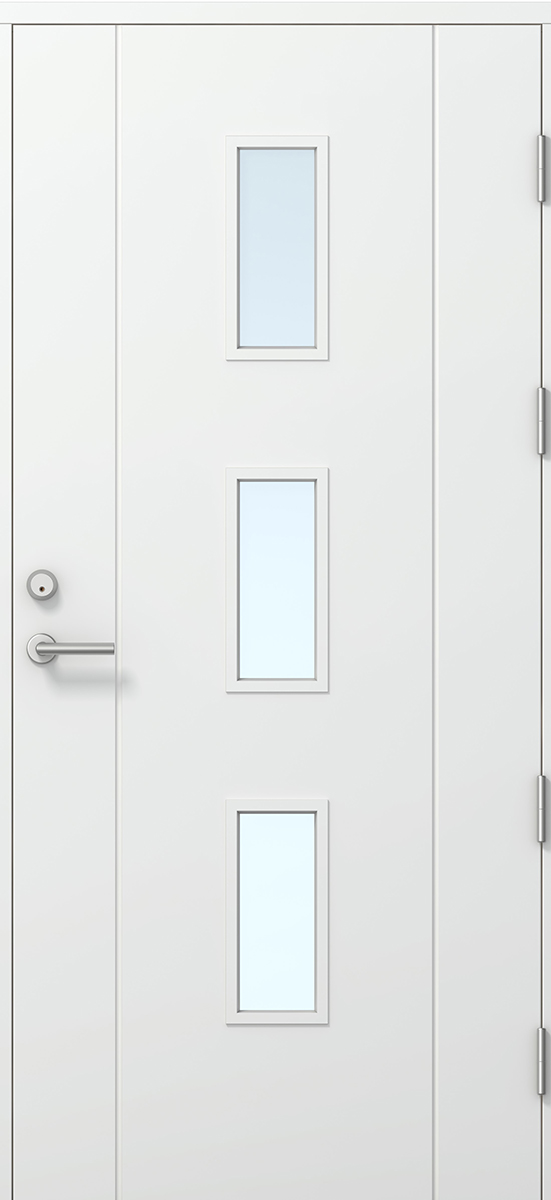 Låskista: ASSA 2002 med justerbart slutbleck.Handtag: Ingår ej Gångjärn: 4st (3 st för modul 20) justerbara Abloy N 3248 med bakkantssäkring.Dörrbladstjocklek: 62mm förstärkt med LVL balk i konstruktionen.Karm: 53x115 Fingerskarvad furu.Tätningslist: i både karm och dörrbladTröskel: Oljelaserad björk och aluminium 25x115mmGlas: klarglas, 3-glas isoler med energiglas och argongasDekor: Spårfräst utsida, slät insidametallplåtsinlägg: för fullvärme Kulör: Dörren är vit som standardU-värde: Classic 1,0 - Thermo tät 0,6 - Thermo glasad 0,8