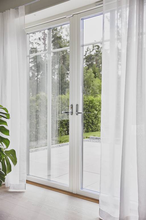 Standard utförande Glas: 3-glas isoler le+argon U-värde 1,2Handtag enkeldörr: in och utvändigt i mattkromHandtag pardörr: in och utvändigt på gångdörr, endast insida på passiv dörrLås: Vred insida och täckbricka utsidaKulör: Vit NCS S 0502-YBeslag enkeldörr: Säkerhetsspanjolett med broms & fallkolvBeslag pardörr: Handtagsmanövrerad säkerhetsspanjolett med fallkolv och broms på gångdörr. Handtagsmanövrerad spanjolett med kantreglar och broms på passivt dörrblad. Karmhylsa Adjufix förmonterad. Skruv ingår ej